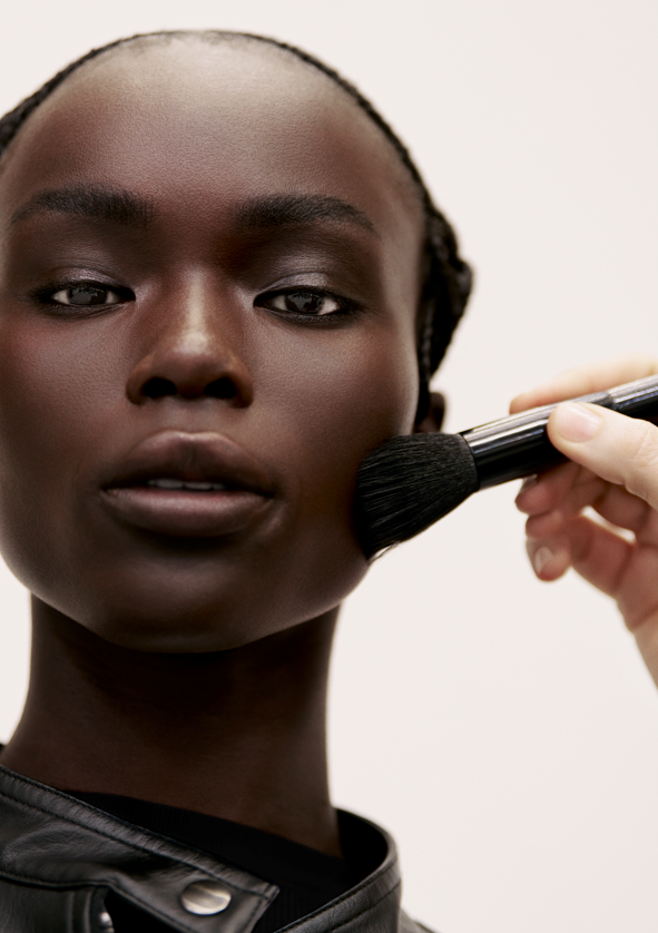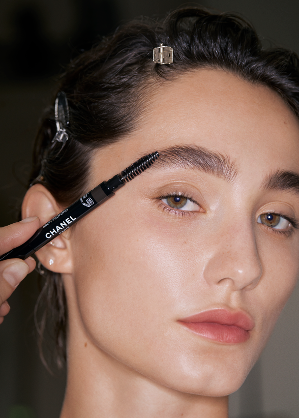 Le mascara volumisant, quant à lui, apporte une profondeur naturelle aux cils sans les alourdir, tandis que les sourcils sont sculptés avec soin grâce à un crayon microfin, garantissant un équilibre parfait entre structure et naturel. Ce regard, à la fois affirmé et délicat, reflète l’esprit même de la collection Chanel : une dualité entre force et douceur.