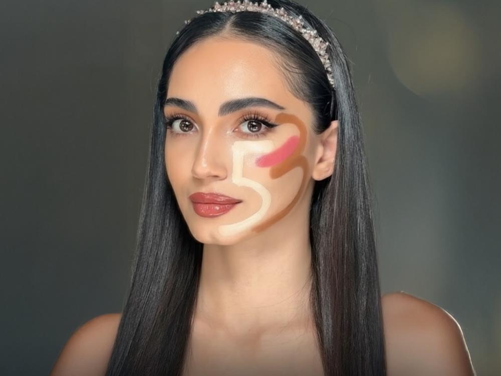 Le principe est aussi simple qu’astucieux : il repose sur un tracé en deux étapes, inspiré des chiffres. Avec un anti-cernes, on dessine un « 5 » sous l’œil, tandis qu’un stick bronzant permet de tracer un « 3 » le long des tempes et de la mâchoire. Ces gestes rapides créent une illusion d’optique sophistiquée, affinant les contours du visage en un clin d’œil. En moins d’une minute, les joues paraissent sculptées, le double menton est estompé, et le visage gagne en harmonie.